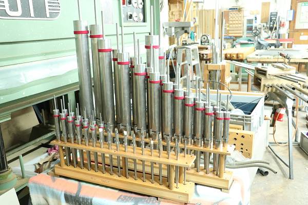 Werkstatt zur Verladung bereit: Die Flöte 4' ist fertig. Damit sie ihre