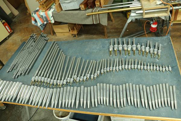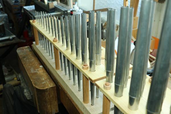 Die Prospektpfeifen aus dem Principal 2' sind gereinigt. Sie müssen noch poliert und intoniert werden.
