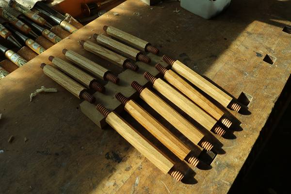 gedrechselte Spundgriffe. Im weiteren Verlauf sind die Griffe nicht