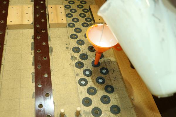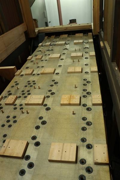 Für die neue Aufteilung auf der Windlade wurden komplizierte Überstöcke erfoderlich. Doch die Mühe lohnt sich, ...