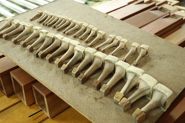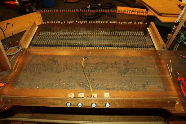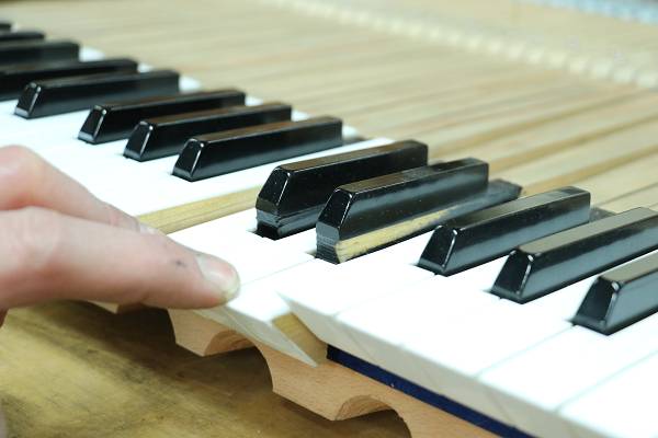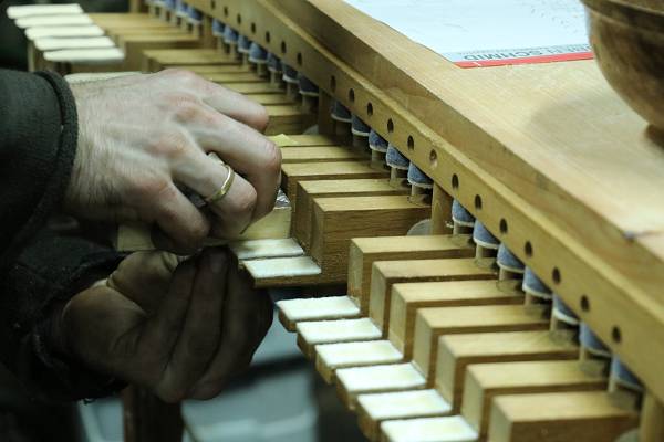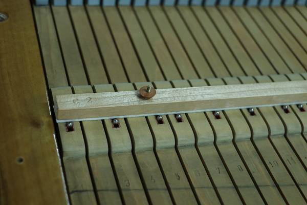 Waagebalkenleisten hergestellt und eingebaut. Nun werden die Tasten beim Spielen nicht mehr aus ihren Lagern gehebelt.