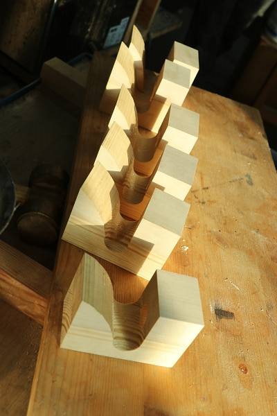 Die Holzpfeifen des Gedecktbass 8' wurden fertiggestellt und anschließend mit Tusche und Feder signiert.