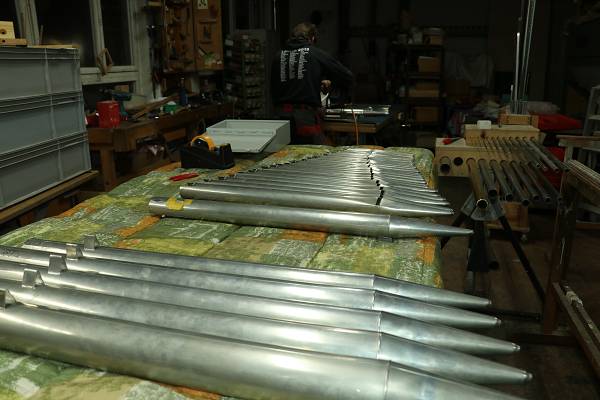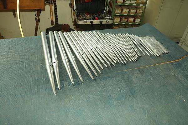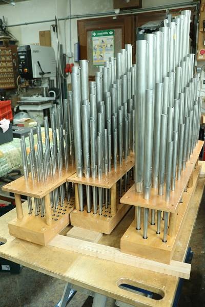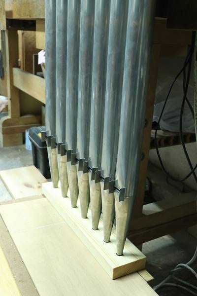 Die Prospektpfeifen aus dem Principal 2' sind gereinigt. Sie müssen noch poliert und intoniert werden.