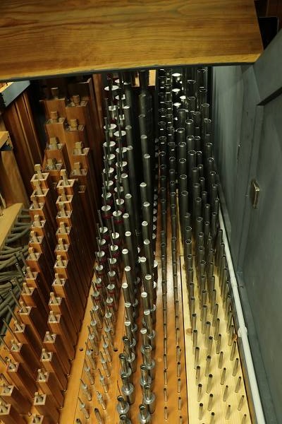 Im Bassbereich wurden 12 neue Pfeifen in gedeckter Bauweise eingebaut.