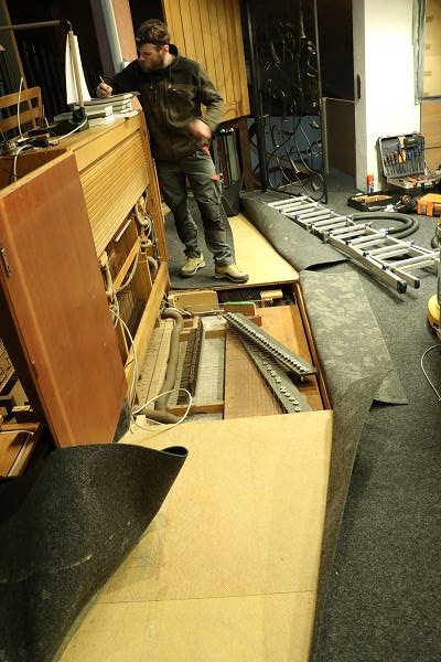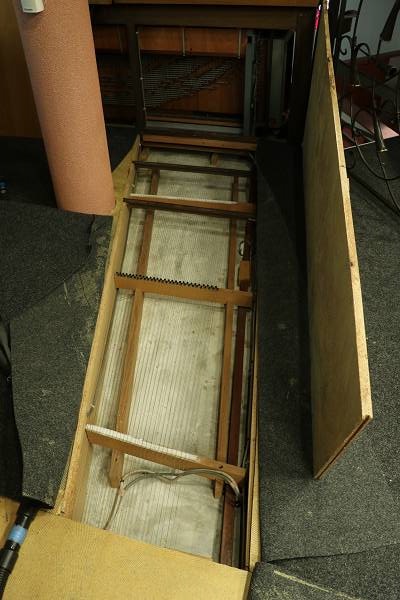 Die Klaviaturen im Spieltisch werden freigelegt. Sämtliche Anbauteile und Registerstaffeleien wurden entfernt.