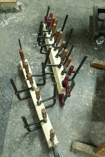 und Raster her. Hier liegen die Windstöcke bereits in der Verleimpresse.