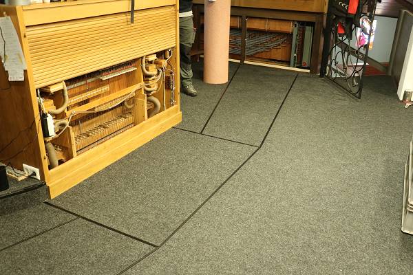 zu: Die Wartungsöffnungen im Boden sind zugeklebt und mit Nadelfilz