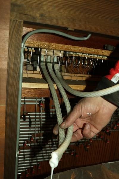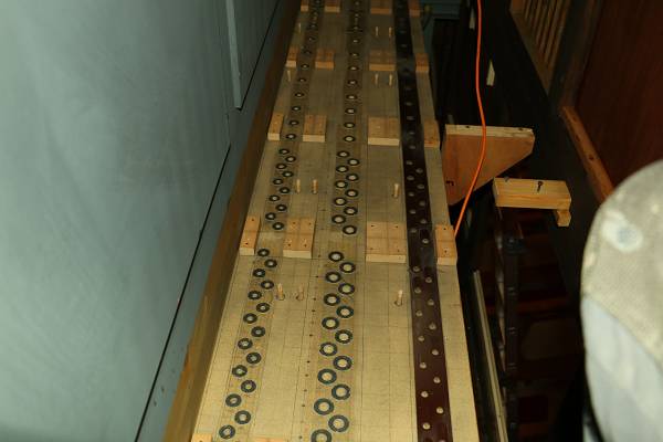 Hier werden die Pfeifen gerade einrastriert. Auf dem Platz stand zuvor das 3-fach Scharff.