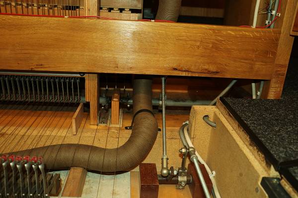 Die Arbeitsbälge für die Pedalkoppeln befinden sich "hinter Gitter". Die Demontage gestaltet sich hierbei etwas schwieriger.