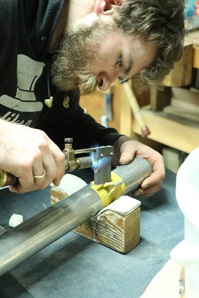 nochmal Werkstattarbeit angesagt. Leon Scharfe stellt die Windstöcke